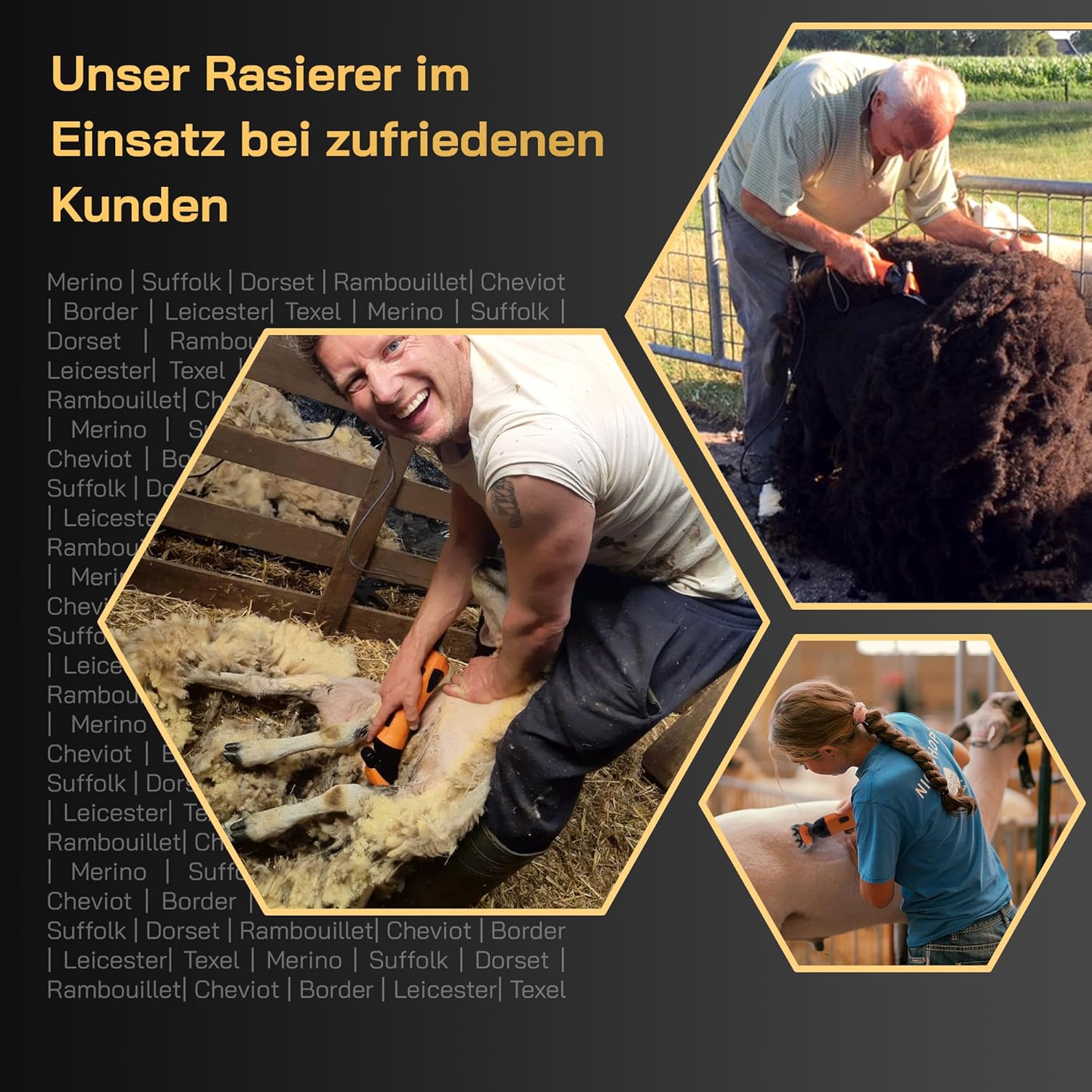 - Für alle Schafrassen geeignet - Diese Schafschermaschine ist perfekt für alle Schafrassen geeignet, einschließlich solcher mit stark verschmutztem Vlies. Dank der hochwertigen Klingen und der robusten Konstruktion können Sie mühelos durch jedes Vlies scheren und ein perfektes Schurergebnis erzielen.